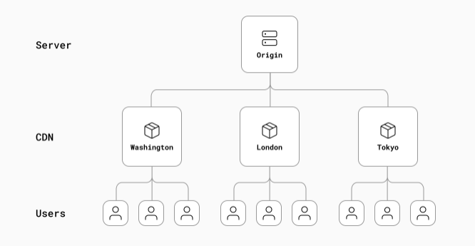 HTML 및 이미지 파일과 같은 정적 콘텐츠를 전 세계 여러 위치에 저장하며 클라이언트와 원본 서버 사이에 배치됩니다. 새로운 요청이 들어오면 사용자와 가장 가까운 CDN 위치가 캐시된 결과로 응답할 수 있습니다.